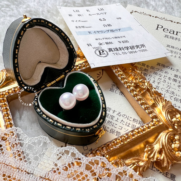 Japanese 6.5mm+ Akoya 18KYG Earrings with PSL mini card - Rose