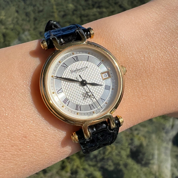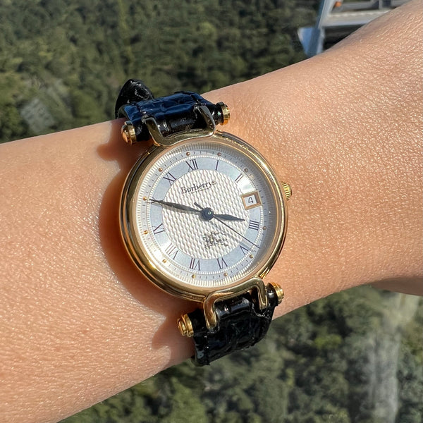 店主今次為大家帶來這隻輕奢侈的Vintage Burberrys時計。評級是Rank Aランク,錶身近新,只有一些極極極細微的髮絲痕和不用放大鏡應該也看不見的極細刮痕(玻璃面則完美無瑕)!至於錶帶,由於較殘舊 (本來那條也不是原裝的),店主已找師傅重新訂製另一條 (材質: 頭層牛皮),亦已把原裝錶扣裝回,讓大家可以把握時間,即買即用🙌🏻。