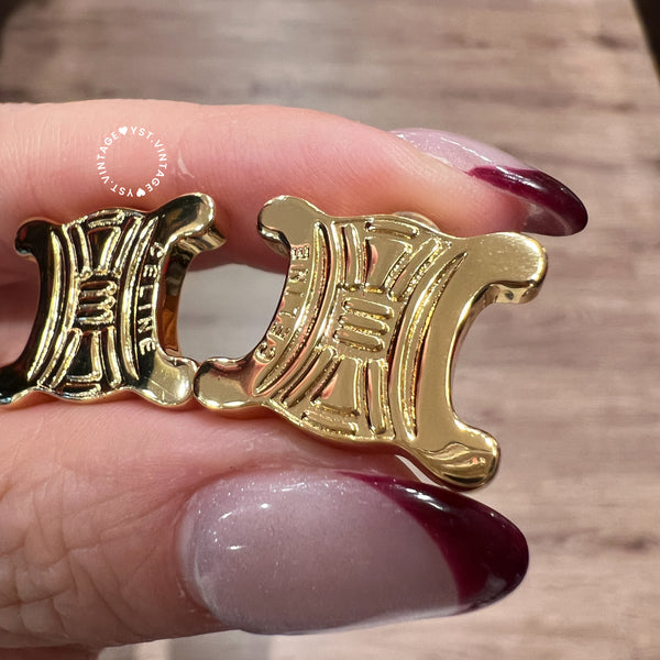 Vintage CELINE Gold-Finish Metal Triomphe Ear Clips
