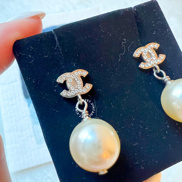 Pre-owned Chanel Coco Mark Rhinestone with Pearl Earrings