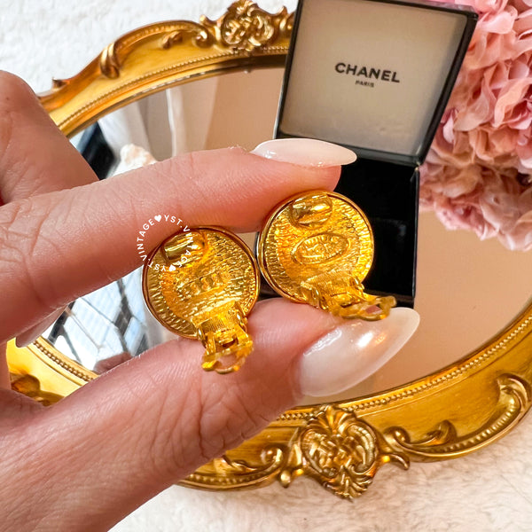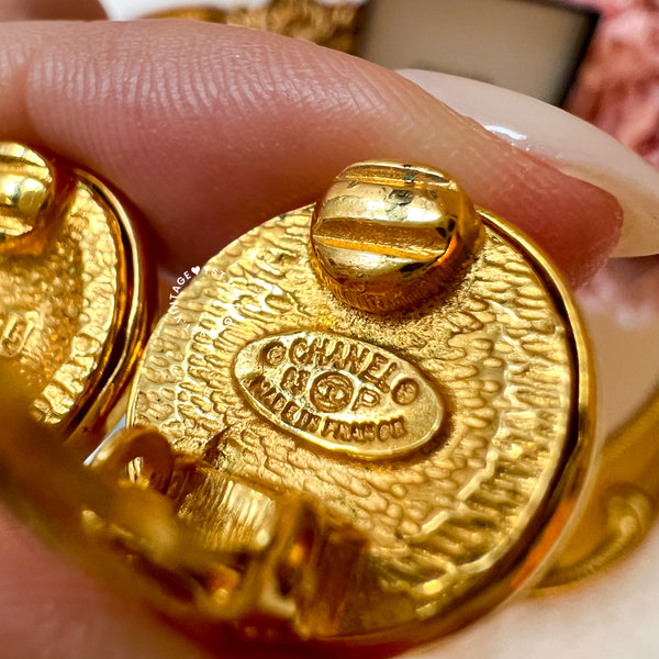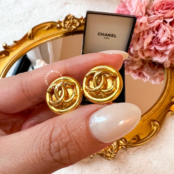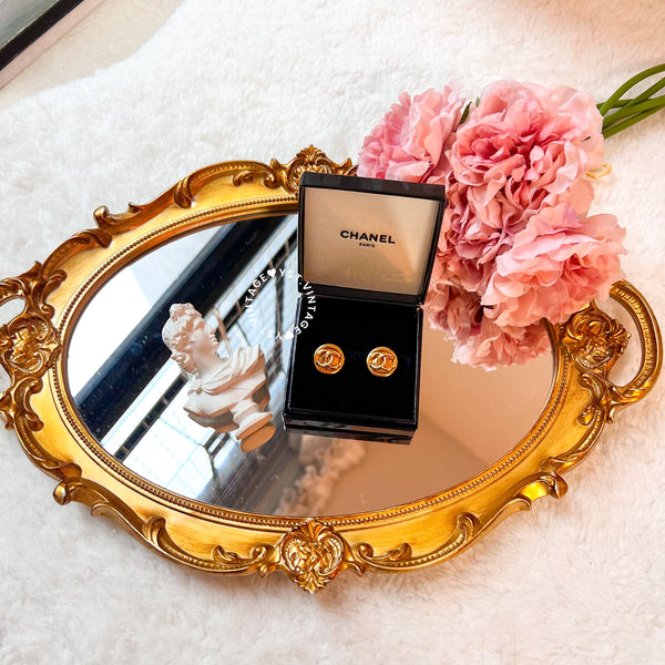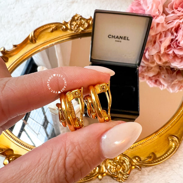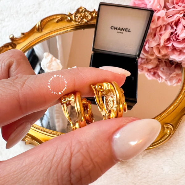 有留意開中古香奶奶的古懂應該會發現,這對小金豆耳夾跟90年代某些香奶奶內的小金豆鏈條有點像。對!真的是差不多耶!連size 也差不多!不同的是耳夾這款的coco mark 是立體的,又特別又耐看!推薦給不喜歡戴大香奶奶耳夾的古懂喔!