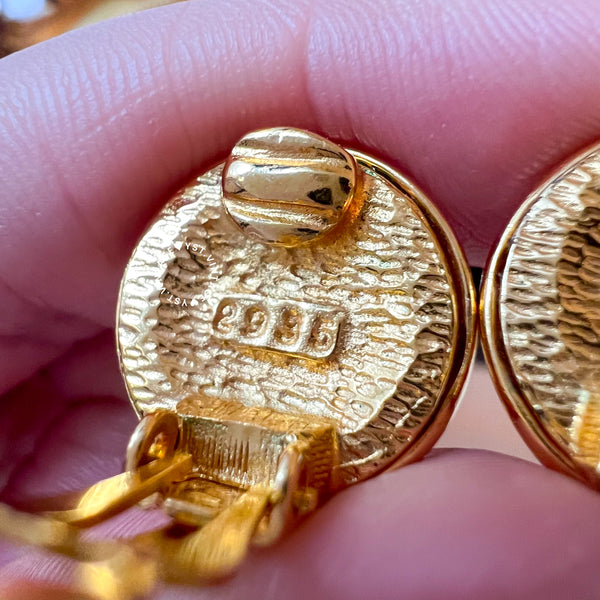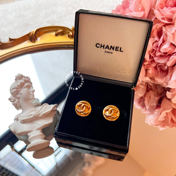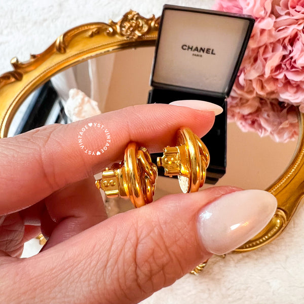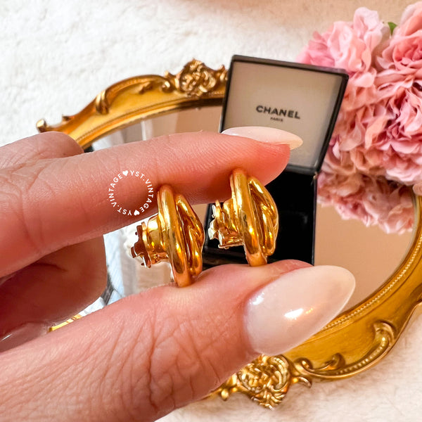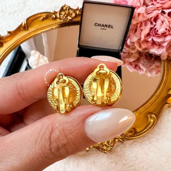 Vintage Chanel 24KGP Coco Mark Bean Ear Clips
