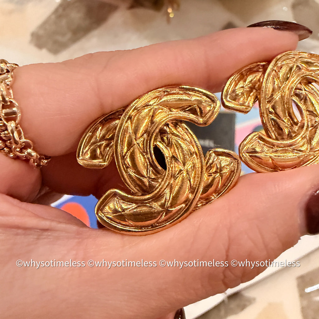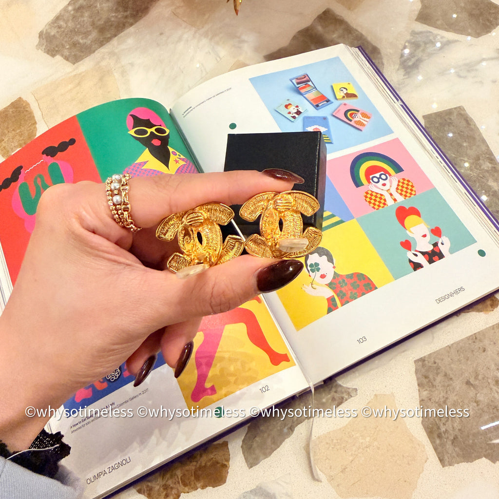 這系列靈感部分來自Chanel的巴洛克風格(Baroque-inspired),強調誇張、戲劇性與金屬光澤,完美契合90年代的奢華主義潮流。Lagerfeld常將CC logo放大、變形,讓它成為焦點,搭配金鍍層與夾式設計(當時Chanel耳環多為clip-on,直到2000年代才廣泛推出pierced款)。