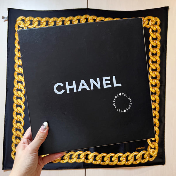 山茶花、Coco Mark、穿皮鏈,這條香奶奶大絲巾有齊香奈兒的經典元素,還要罕有地連原裝盒全新未使用保存品,沒有使用痕跡也沒有瑕疵,價錢也非常好,絕對是香奈兒/ 絲巾粉必儲的一個中古項目之一!
