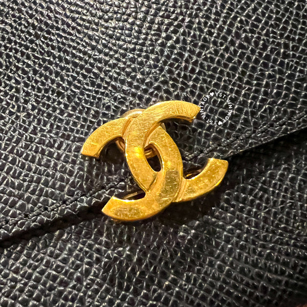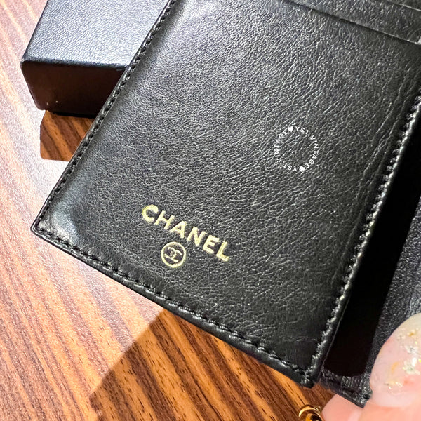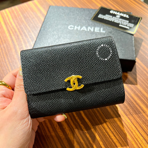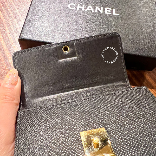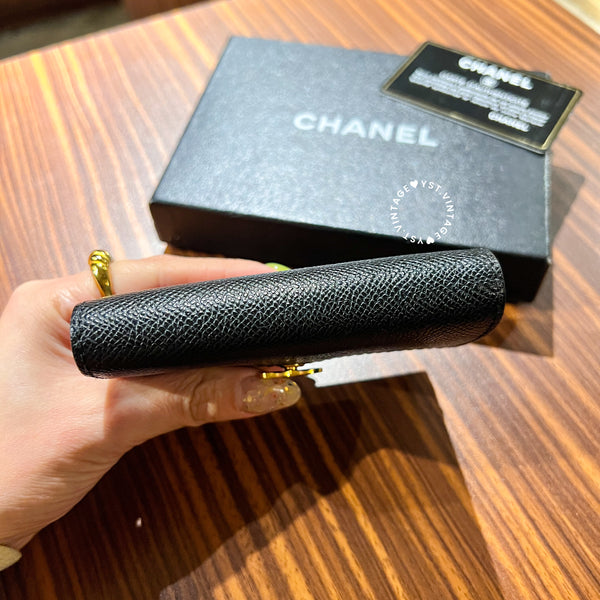 Vintage Chanel Caviar Coco Lock Short Wallet/ Card Holder - Black