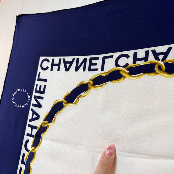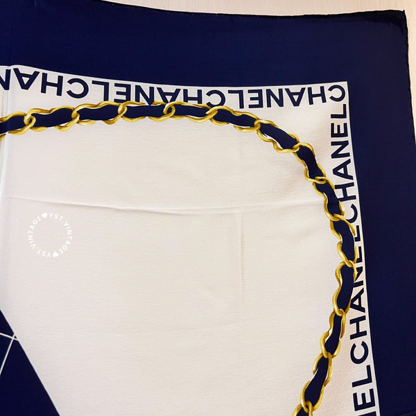 Vintage Chanel Class Flap Handbag Silk Scarf 90 - Navy*White