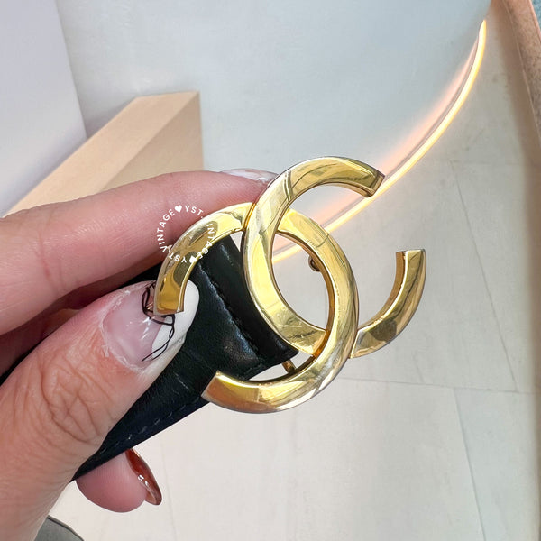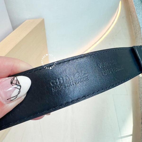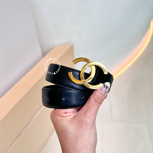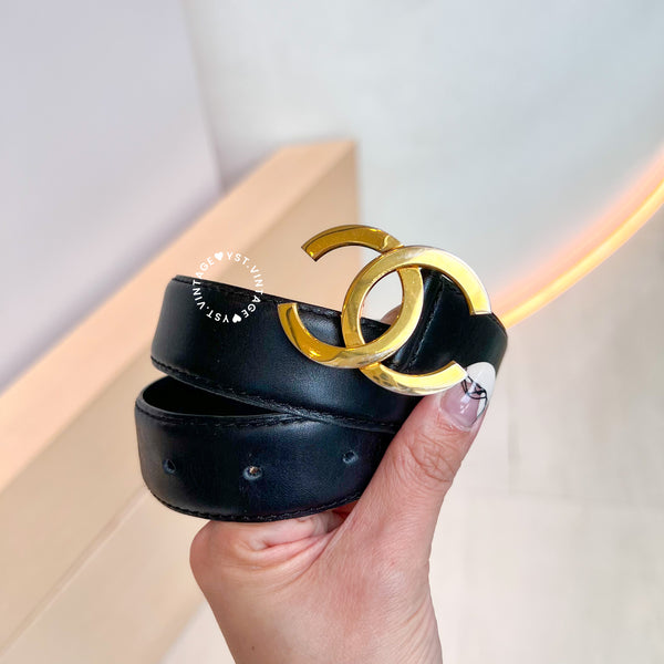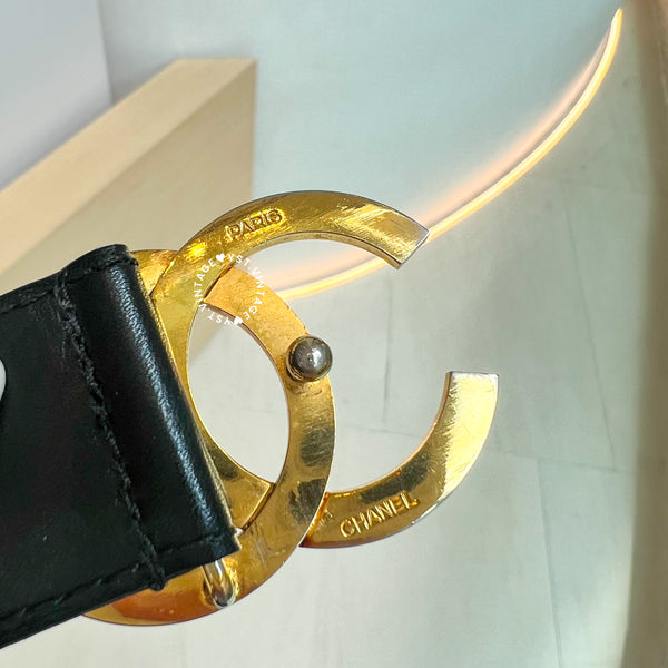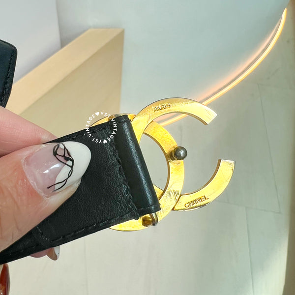 Vintage Chanel Coco Mark Leather Belt - Black*Gold