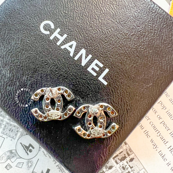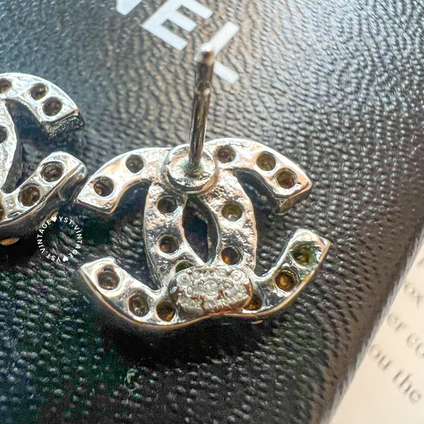 Vintage Chanel Coco Mark Rhinestone Silver-Finish Metal Earrings