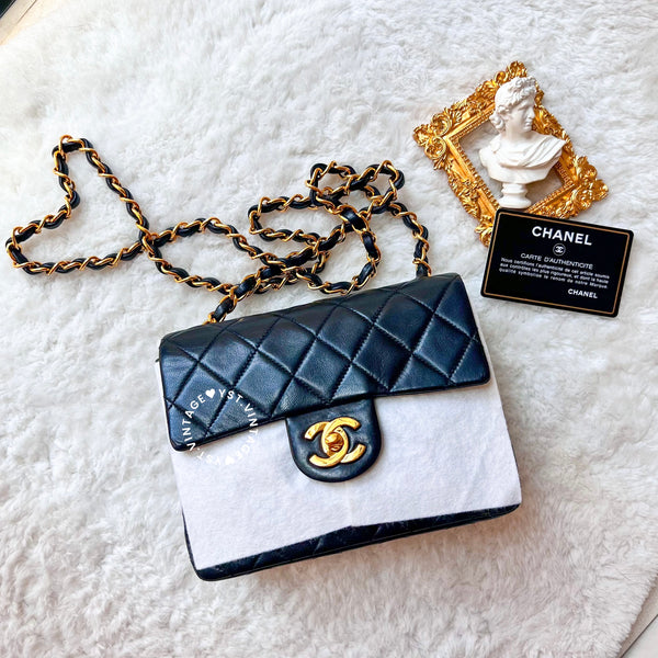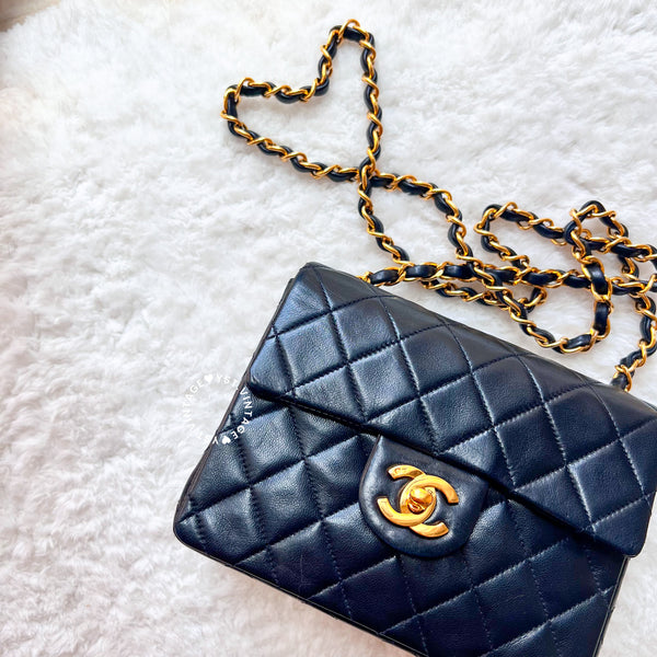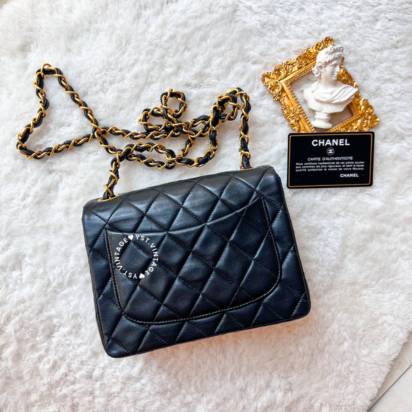 Vintage Chanel Mini Square Flap Bag - Black x Gold 004