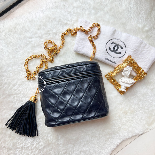 【20%OFF】Vintage Chanel Mini Vanity With 24KGP Bijoux Chain - Black