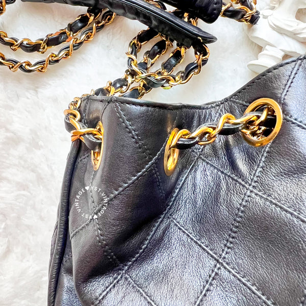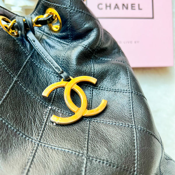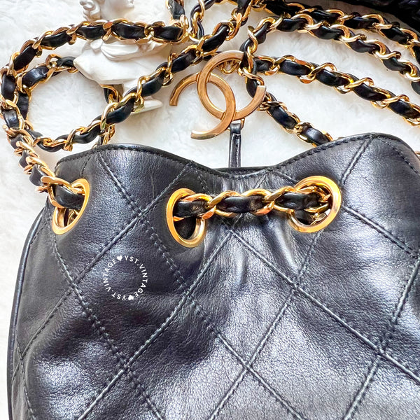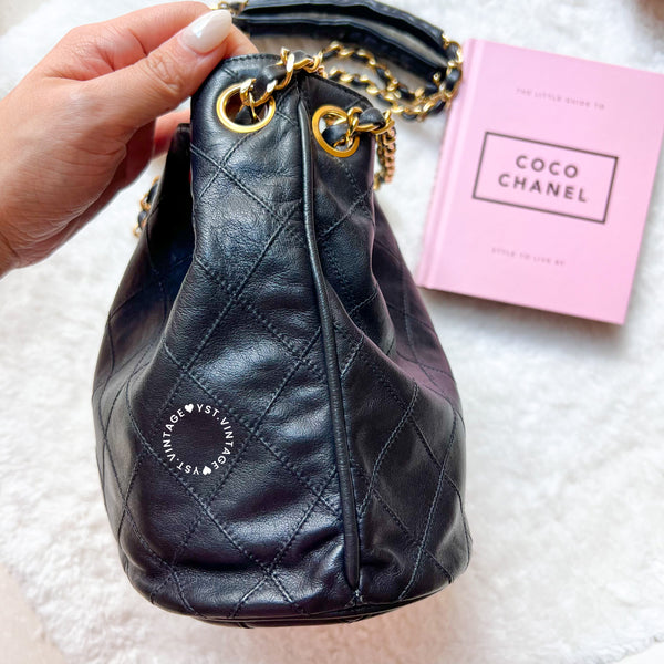 Vintage Chanel Small Bucket Bag with Coco Mark Chain - Black