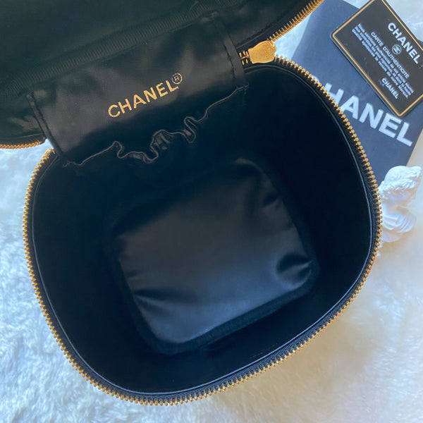 Vintage CHANEL Vertical Vanity Bag - Lambskin Black 005