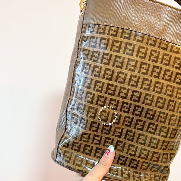 Vintage Fendi Zucca Bucket Bag - Beige