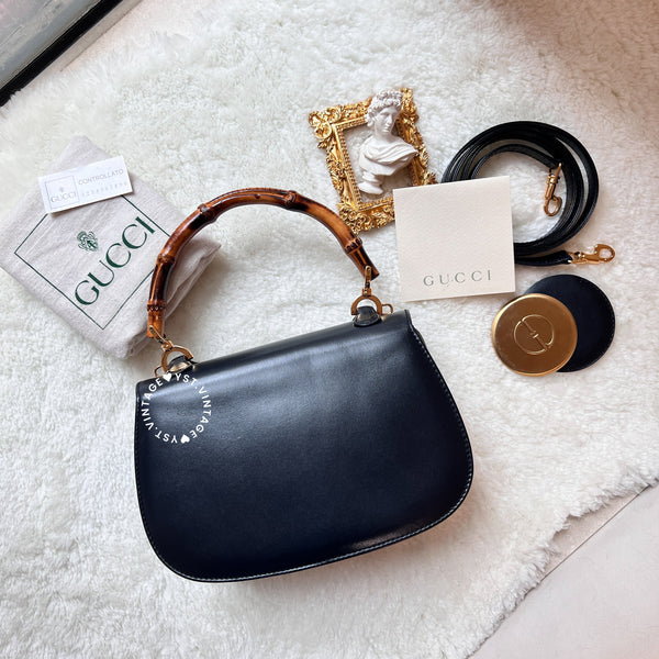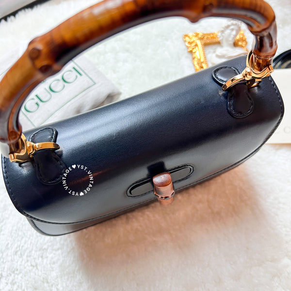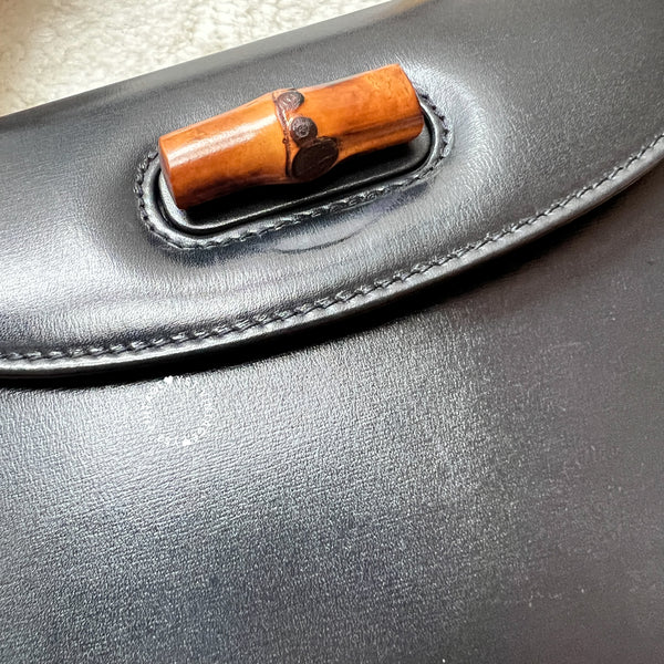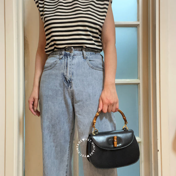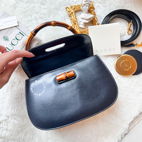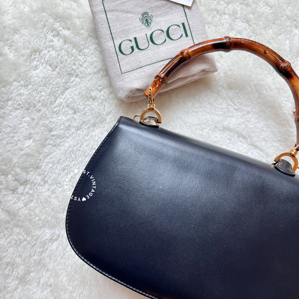 Vintage Gucci Bamboo Small Top Handle Bag - Navy/ Beige