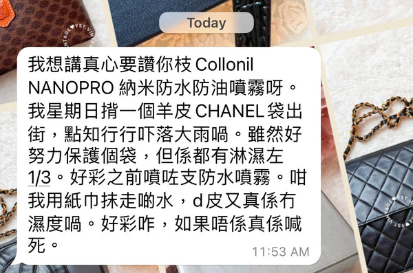 p.s. 對於已經舊或臟的物料要想獲得更好的防污性能請先用 Collonil Bamboo Lotion 徹底清潔後再使用NANOPRO 納米防水防油噴霧