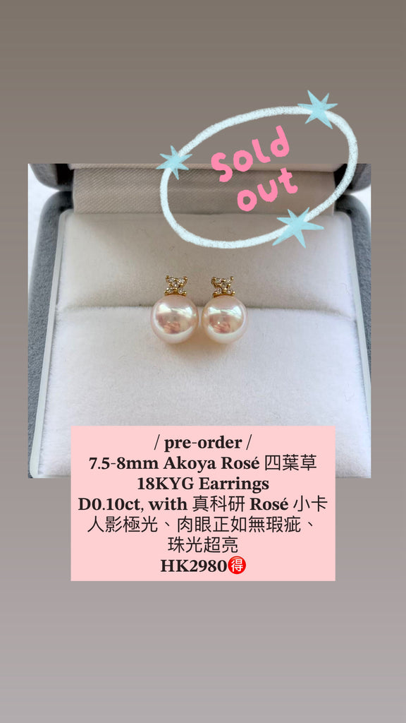 【Pre-order】7.5-8mm Akoya Rosé Natural Diamond 18KYG Earrings