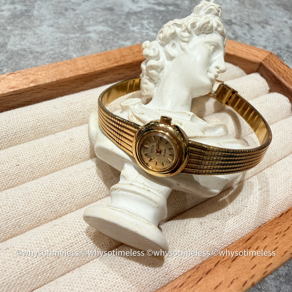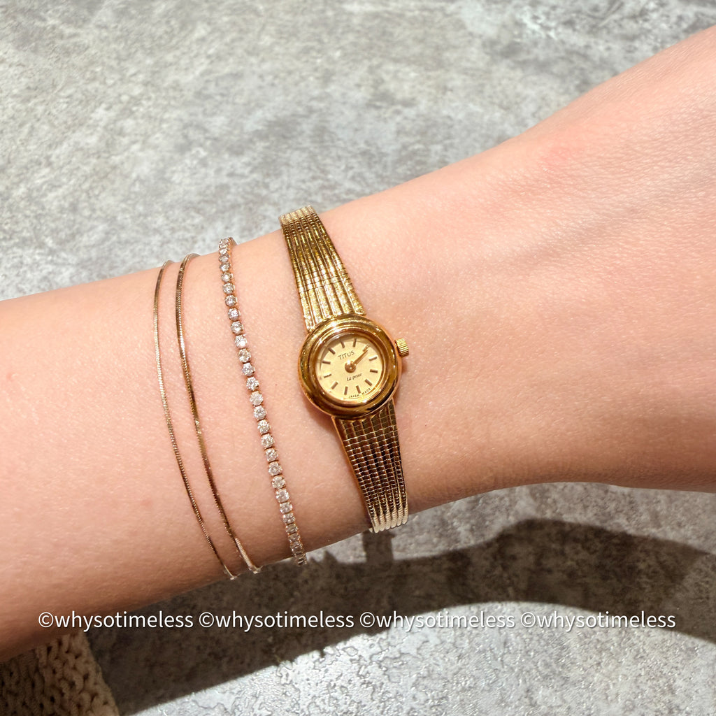 TITUS 是瑞士品牌(Solvil et Titus),在80 年代有不少款式外判到日本製造機芯。La Petite 系列主打小巧、優雅、仿手鐲的設計,多配以金色網帶或鏈帶,是專為亞洲市場或大眾消費設計的,非常受 vintage 收藏家和女士們歡迎。