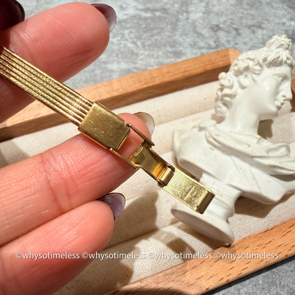 手錶整體非常新淨,只有輕微使用痕跡 (主要是錶帶背面的髮絲痕),鍍金部份絲毫沒有褪色,錶面玻璃沒有花/ 刮痕發現,走鐘亦正常,是一隻還可以用很久什至可以用作家傳之寶的古董石英錶。