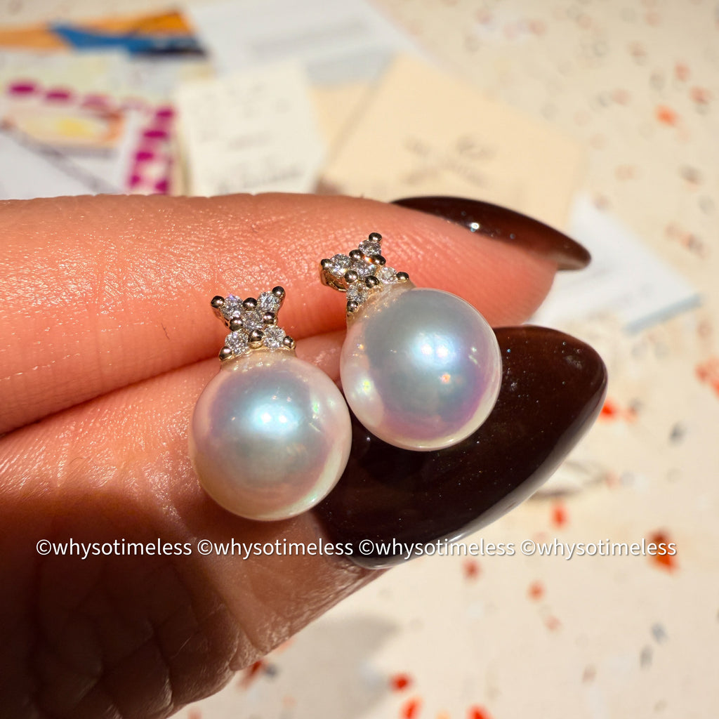 7.5-8mm Akoya Rosé Natural Diamond 18KYG Earrings